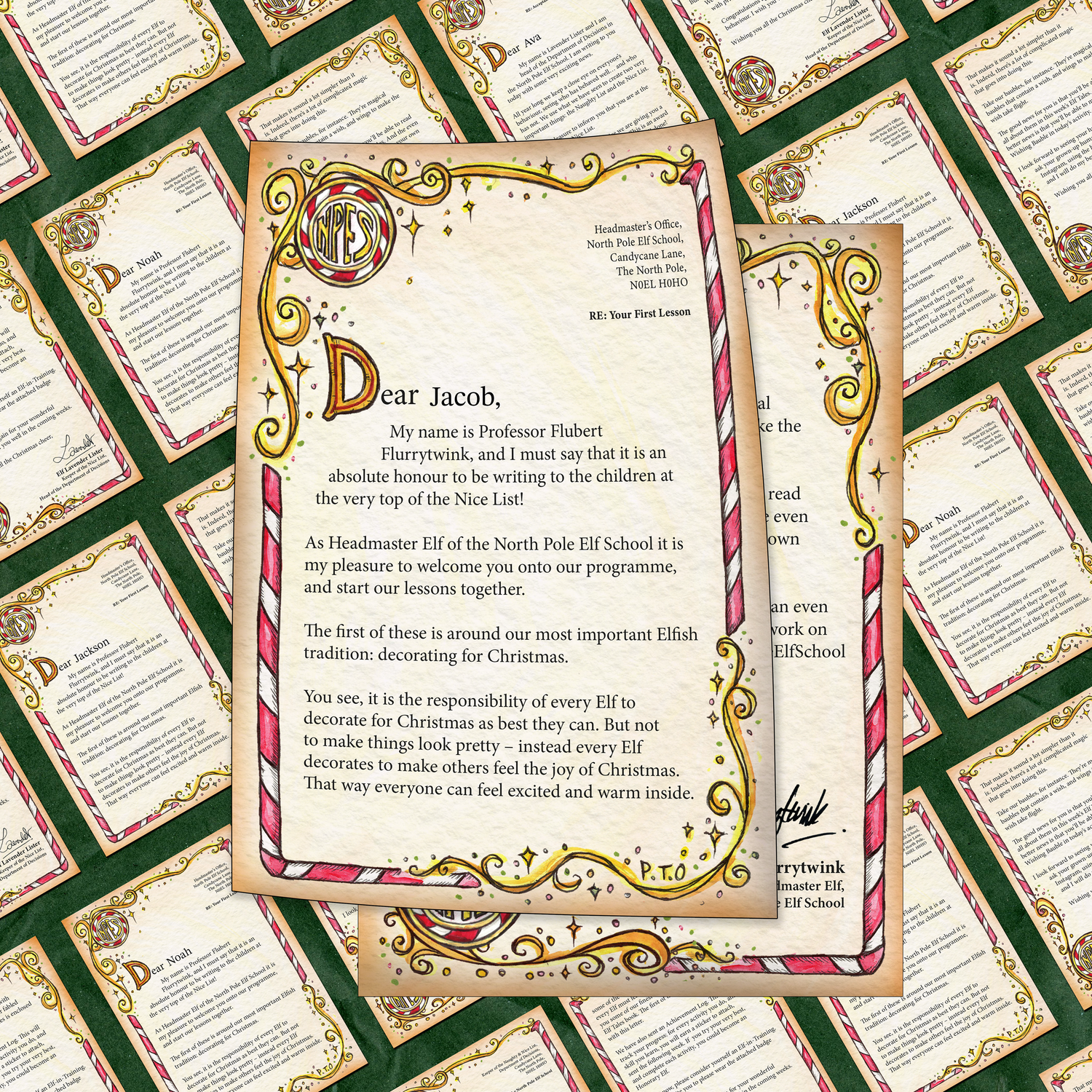 Professor Flubert Flurrytwink - Headmaster Elf of the North Pole Elf School - writes to your child each week in a personalised letter. He shares weekly updates of events at the North Pole, sets the theme of the next activity, and awards your badges...
